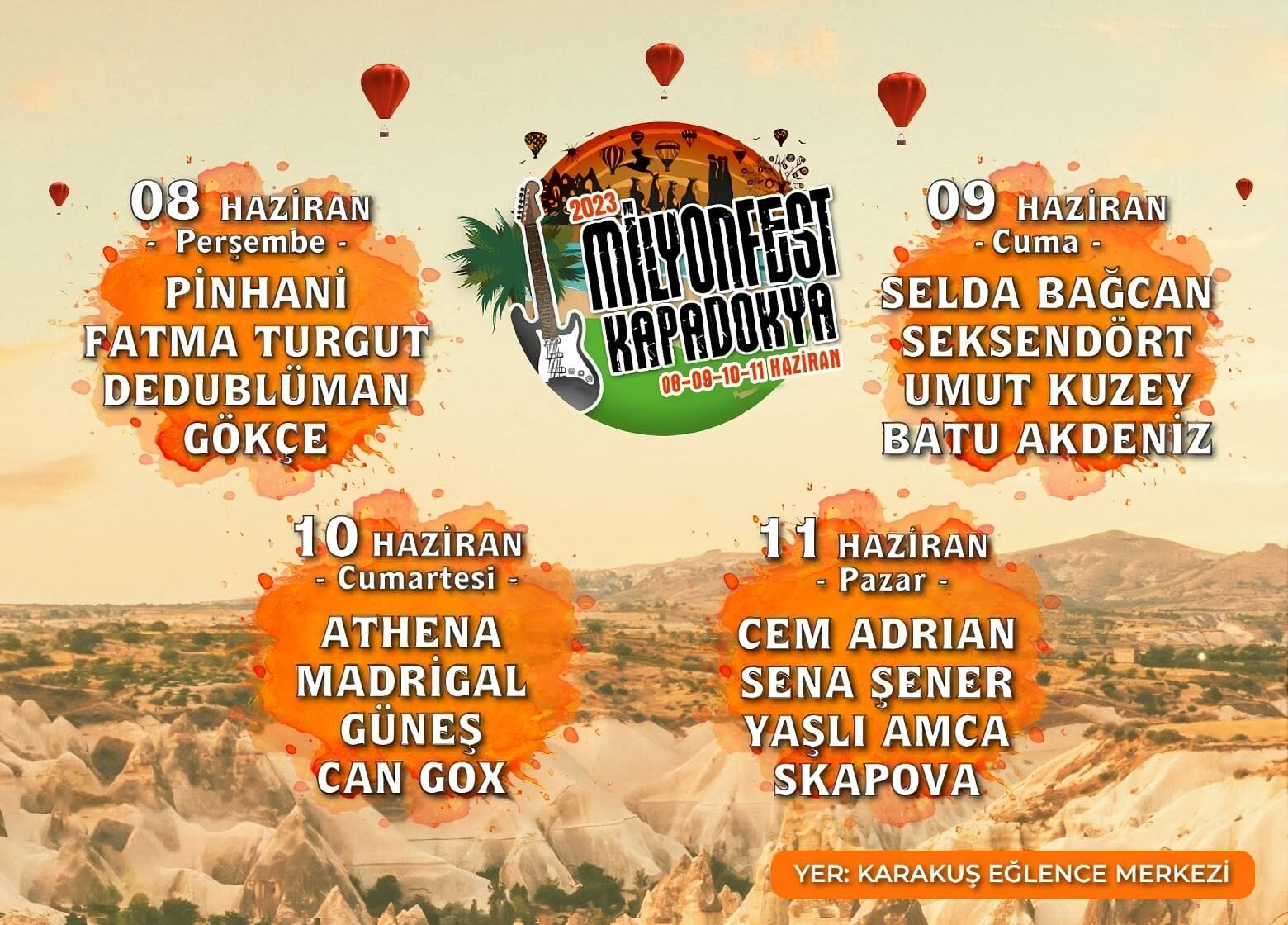 Milyonfest Kapadokya 2023- Milyonfest Kapadokya, 08-09-10-11 Haziran tarihlerinde Karakuş Eğlence Merkezi’nde müzikseverlerle buluşacak!